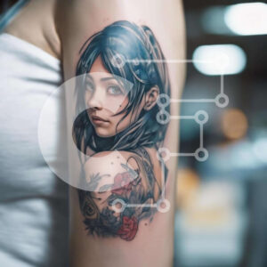 Intra Συλλεκτικό Ξύλινο Παζλ Plywood 4mm - Γυναίκα με τατουάζ ελκυστικό κορίτσι και τριαντάφυλλα στο μπράτσο Σε Ξύλινο Κουτί - Διαστάσεις: 10x10 cm – 25 κομμάτια
