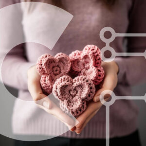 Intra Συλλεκτικό Ξύλινο Παζλ Plywood 4mm - Γυναίκα που κρατά κροσέ αντικείμενα σε σχήμα καρδιάς Σε Ξύλινο Κουτί - Διαστάσεις: 10x10 cm – 25 κομμάτια