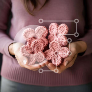 Intra Συλλεκτικό Ξύλινο Παζλ Plywood 4mm - Γυναίκα που κρατά κροσέ ροζ λουλούδια Σε Ξύλινο Κουτί - Διαστάσεις: 10x10 cm – 25 κομμάτια