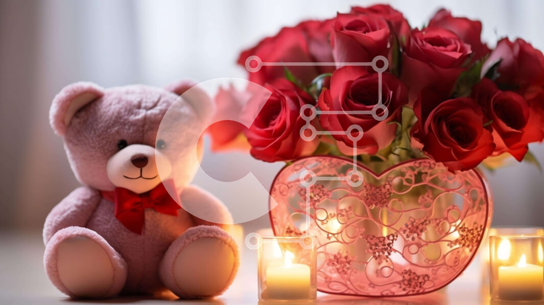 Intra Συλλεκτικό Ξύλινο Παζλ Plywood 4mm - Αρκουδάκι με κόκκινα τριαντάφυλλα και κεριά Σε Ξύλινο Κουτί - Διαστάσεις: 10x10 cm – 25 κομμάτια