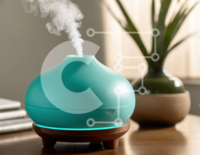 Intra Συλλεκτικό Ξύλινο Παζλ Plywood 4mm - Διαχύτης με γαλαζοπράσινο χρώμα σε ξύλινο τραπέζι Σε Ξύλινο Κουτί - Διαστάσεις: 10x10 cm – 25 κομμάτια