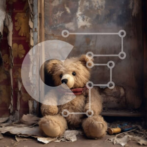 Intra Συλλεκτικό Ξύλινο Παζλ Plywood 4mm - Εγκαταλελειμμένο αρκουδάκι μπροστά από την παλιά πόρτα Σε Ξύλινο Κουτί - Διαστάσεις: 10x10 cm – 25 κομμάτια