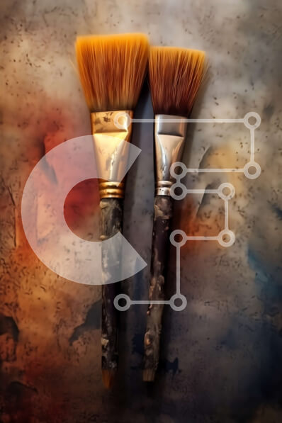 Intra Συλλεκτικό Ξύλινο Παζλ Plywood 4mm - Δύο πινέλα με κίτρινες και μαύρες τρίχες σε υγρή επιφάνεια Σε Ξύλινο Κουτί - Διαστάσεις: 10x10 cm – 25 κομμάτια