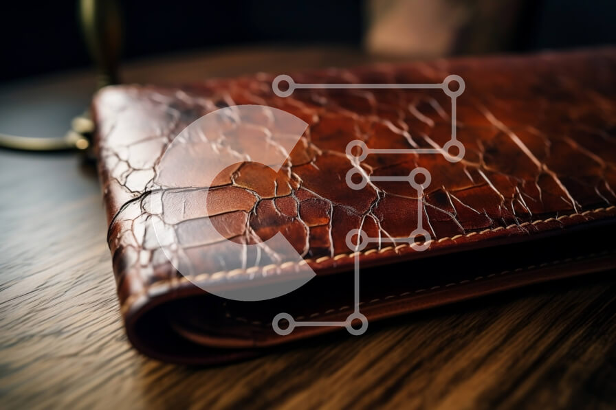 Intra Συλλεκτικό Ξύλινο Παζλ Plywood 4mm - Vintage καφέ δερμάτινο πορτοφόλι με ραγισμένη υφή σε ξύλινο τραπέζι Σε Ξύλινο Κουτί - Διαστάσεις: 10x10 cm – 25 κομμάτια