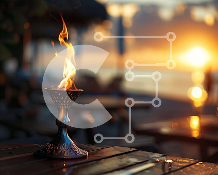 Intra Συλλεκτικό Ξύλινο Παζλ Plywood 4mm - Κερί σε εξωτερικό ξύλινο τραπέζι με ηλιοβασίλεμα Σε Ξύλινο Κουτί - Διαστάσεις: 10x10 cm – 25 κομμάτια