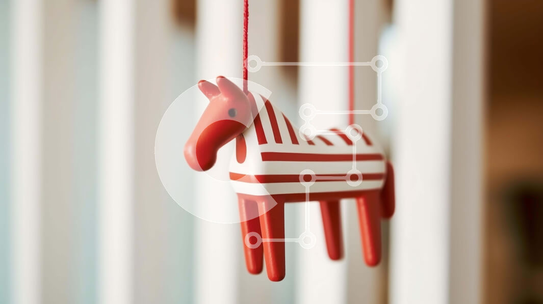 Intra Συλλεκτικό Ξύλινο Παζλ Plywood 4mm - Κόκκινο και άσπρο στολίδι αλόγων που κρέμεται από το κιγκλίδωμα Σε Ξύλινο Κουτί - Διαστάσεις: 10x10 cm – 25 κομμάτια