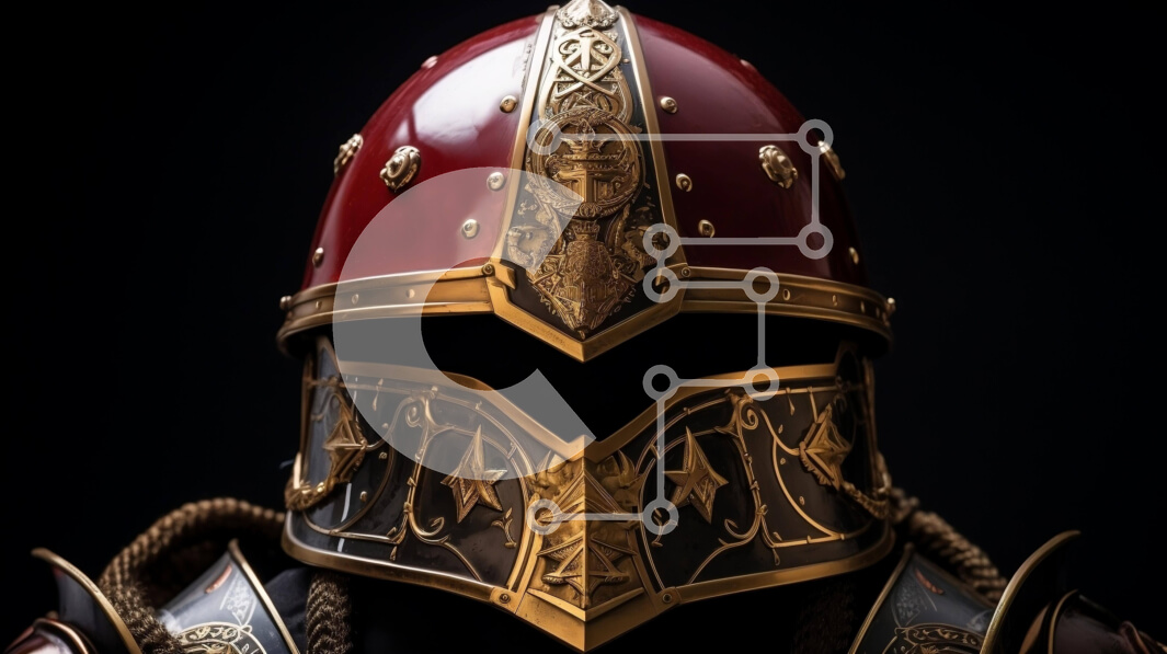 Intra Συλλεκτικό Ξύλινο Παζλ Plywood 4mm - Κόκκινο και χρυσό θωρακισμένο κράνος για ιστορικά πλαίσια Σε Ξύλινο Κουτί - Διαστάσεις: 10x10 cm – 25 κομμάτια