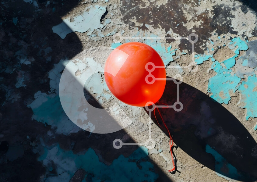 Intra Συλλεκτικό Ξύλινο Παζλ Plywood 4mm - Κόκκινο μπαλόνι σε παλιά φθαρμένη επιφάνεια Σε Ξύλινο Κουτί - Διαστάσεις: 10x10 cm – 25 κομμάτια