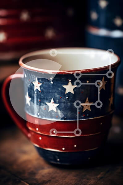 Intra Συλλεκτικό Ξύλινο Παζλ Plywood 4mm - Κόκκινο, λευκό και μπλε κεραμικό κύπελλο με αστέρια σε ξύλινο τραπέζι Σε Ξύλινο Κουτί - Διαστάσεις: 10x10 cm – 25 κομμάτια