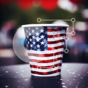 Intra Συλλεκτικό Ξύλινο Παζλ Plywood 4mm - Κόκκινο, λευκό και μπλε χάρτινο κύπελλο αμερικανικής σημαίας Σε Ξύλινο Κουτί - Διαστάσεις: 10x10 cm – 25 κομμάτια