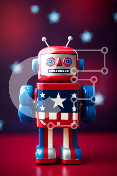 Intra Συλλεκτικό Ξύλινο Παζλ Plywood 4mm - Κόκκινο, λευκό και μπλε παιχνίδι ρομπότ σε σχέδιο αμερικανικής σημαίας Σε Ξύλινο Κουτί - Διαστάσεις: 10x10 cm – 25 κομμάτια