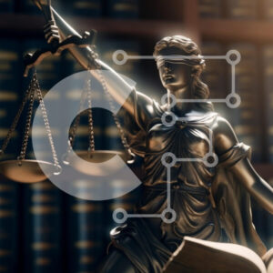Intra Συλλεκτικό Ξύλινο Παζλ Plywood 4mm - Άγαλμα της κυρίας δικαιοσύνης σε μια νομική βιβλιοθήκη Σε Ξύλινο Κουτί - Διαστάσεις: 10x10 cm – 25 κομμάτια