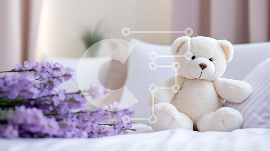 Intra Συλλεκτικό Ξύλινο Παζλ Plywood 4mm - Λευκό αρκουδάκι με μωβ λουλούδια στο κρεβάτι Σε Ξύλινο Κουτί - Διαστάσεις: 10x10 cm – 25 κομμάτια