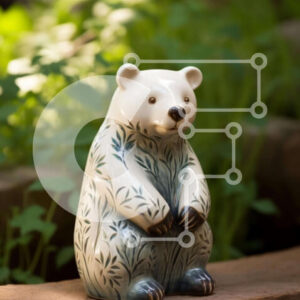 Intra Συλλεκτικό Ξύλινο Παζλ Plywood 4mm - Λευκό και μπλε κεραμικό ειδώλιο αρκούδας σε ξύλινο πάγκο Σε Ξύλινο Κουτί - Διαστάσεις: 10x10 cm – 25 κομμάτια