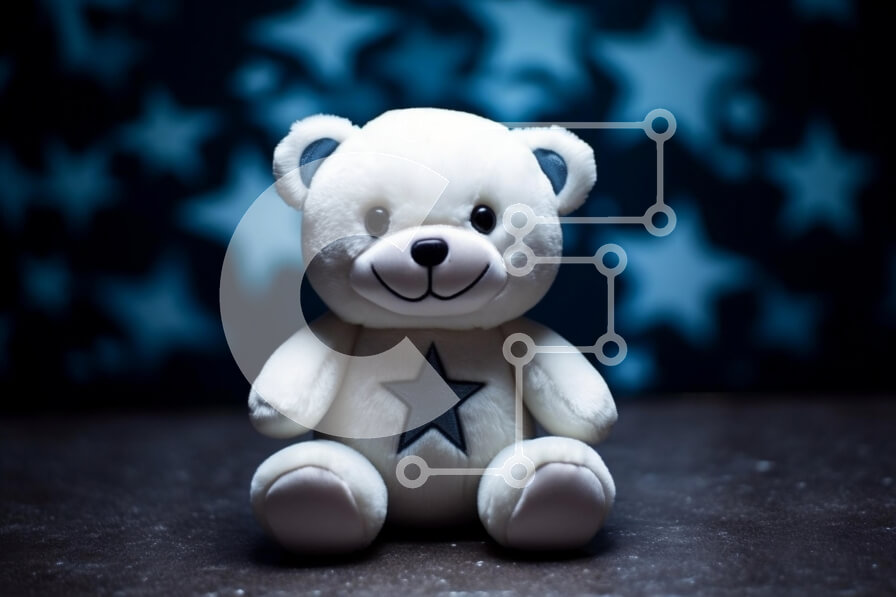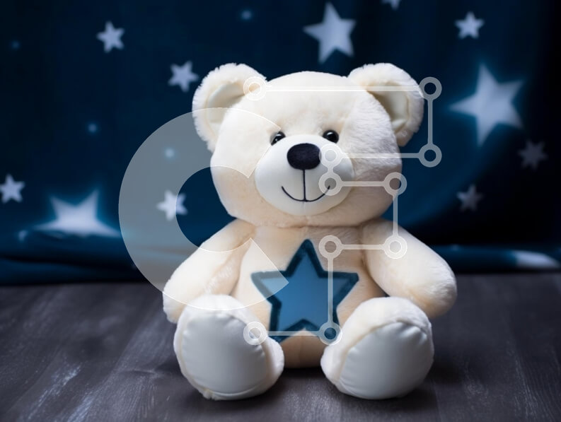 Intra Συλλεκτικό Ξύλινο Παζλ Plywood 4mm - Λούτρινο λευκό αρκουδάκι με φόντο μπλε αστέρια Σε Ξύλινο Κουτί - Διαστάσεις: 10x10 cm – 25 κομμάτια
