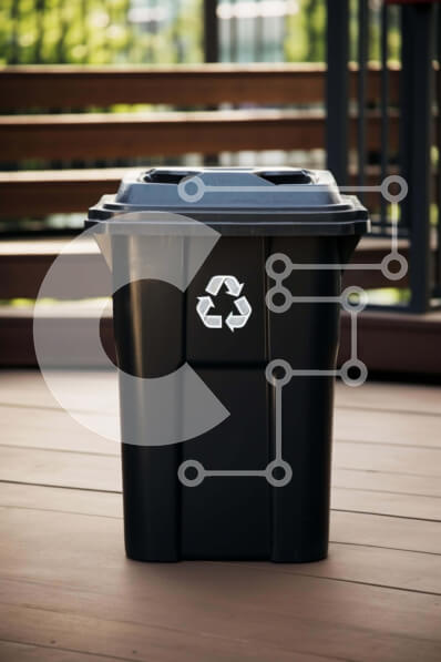 Intra Συλλεκτικό Ξύλινο Παζλ Plywood 4mm - Μαύρος κάδος απορριμμάτων σε υπαίθριο ξύλινο κατάστρωμα Σε Ξύλινο Κουτί - Διαστάσεις: 10x10 cm – 25 κομμάτια