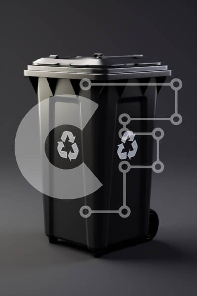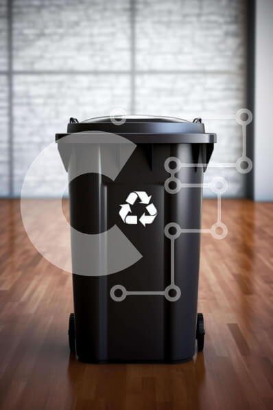 Intra Συλλεκτικό Ξύλινο Παζλ Plywood 4mm - Μαύρος κάδος απορριμμάτων με σύμβολα ανακύκλωσης σε ρόδες Σε Ξύλινο Κουτί - Διαστάσεις: 10x10 cm – 25 κομμάτια