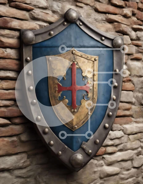 Intra Συλλεκτικό Ξύλινο Παζλ Plywood 4mm - Μπλε και χρυσή ασπίδα στον τοίχο από τούβλα Σε Ξύλινο Κουτί - Διαστάσεις: 10x10 cm – 25 κομμάτια