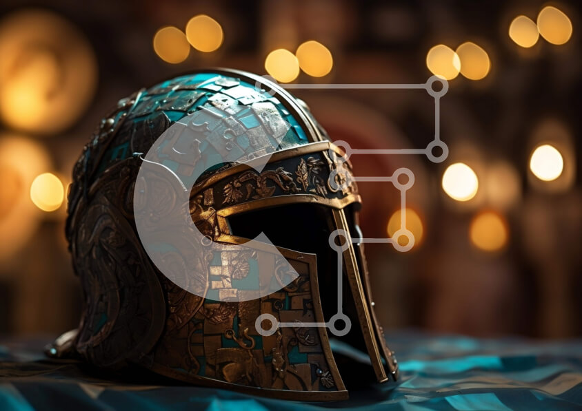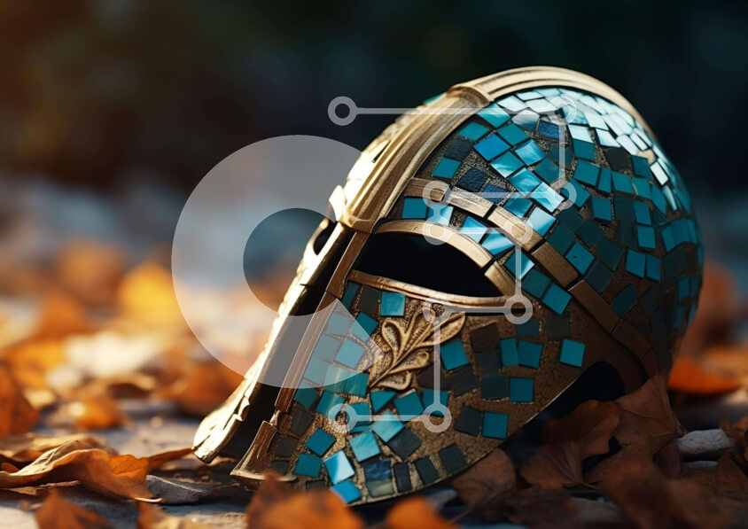 Intra Συλλεκτικό Ξύλινο Παζλ Plywood 4mm - Μπλε και χρυσό μωσαϊκό κράνος σε φύλλα Σε Ξύλινο Κουτί - Διαστάσεις: 10x10 cm – 25 κομμάτια