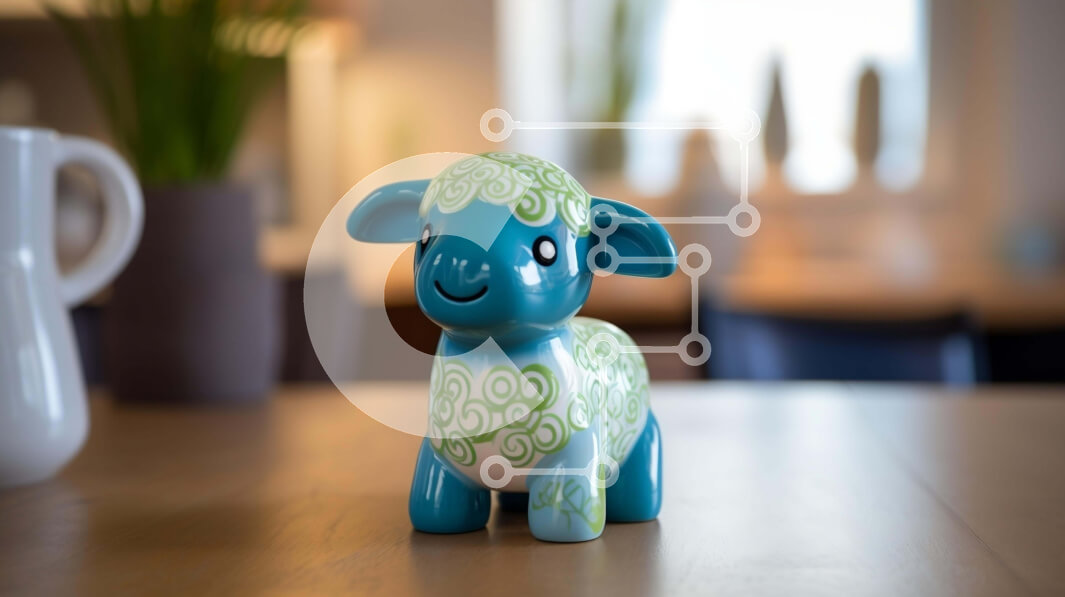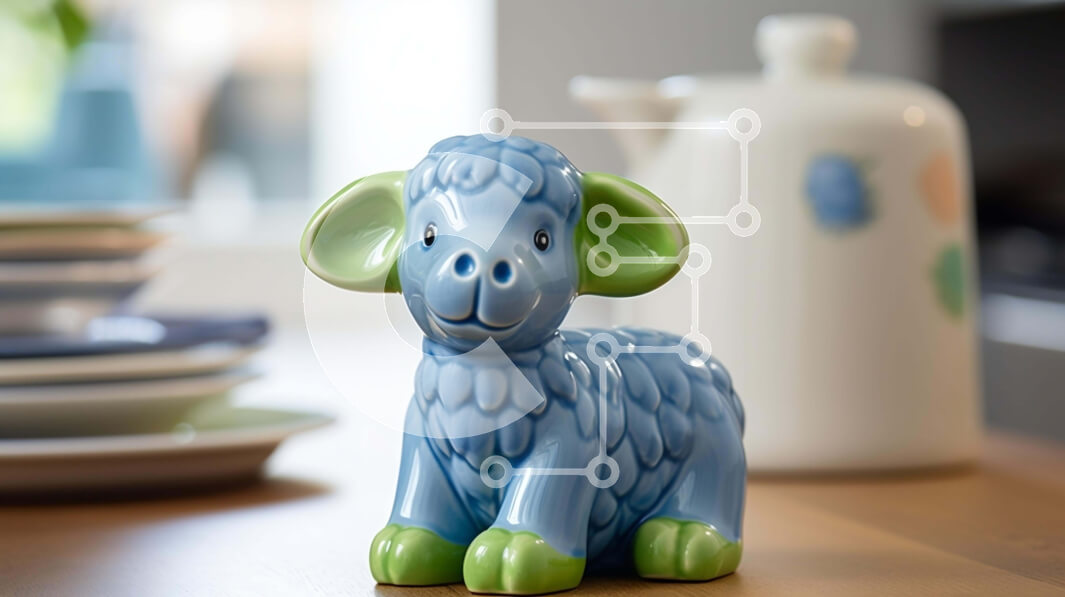 Intra Συλλεκτικό Ξύλινο Παζλ Plywood 4mm - Μπλε και πράσινο ειδώλιο παιχνίδι προβάτου στον πάγκο της κουζίνας Σε Ξύλινο Κουτί - Διαστάσεις: 10x10 cm – 25 κομμάτια