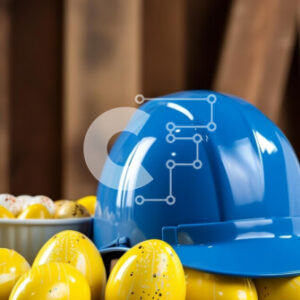 Intra Συλλεκτικό Ξύλινο Παζλ Plywood 4mm - Μπλε σκληρό καπέλο και κίτρινα αυγά στο τραπέζι Σε Ξύλινο Κουτί - Διαστάσεις: 10x10 cm – 25 κομμάτια