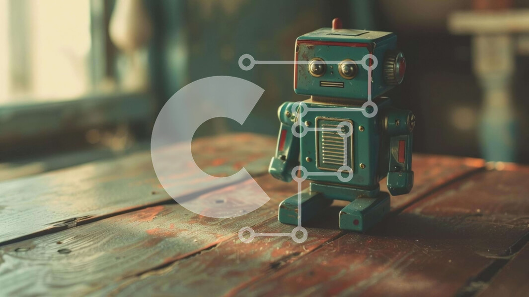 Intra Συλλεκτικό Ξύλινο Παζλ Plywood 4mm - Μπλε παιχνίδι ρομπότ σε παλιό ξύλινο τραπέζι Σε Ξύλινο Κουτί - Διαστάσεις: 10x10 cm – 25 κομμάτια