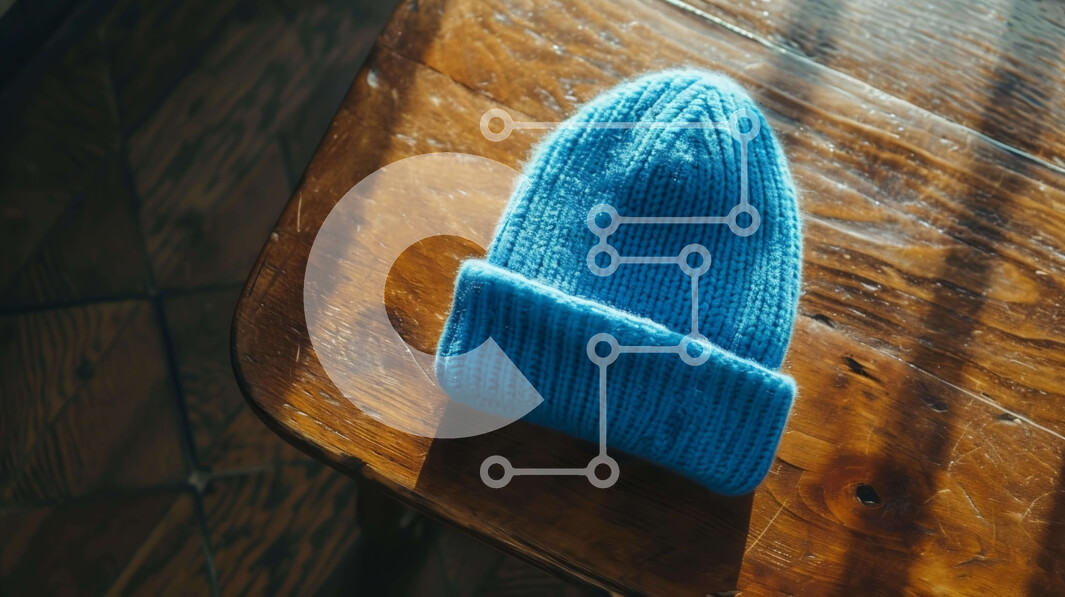 Intra Συλλεκτικό Ξύλινο Παζλ Plywood 4mm - Μπλε πλεκτό Beanie σε παλιό ξύλινο τραπέζι Σε Ξύλινο Κουτί - Διαστάσεις: 10x10 cm – 25 κομμάτια