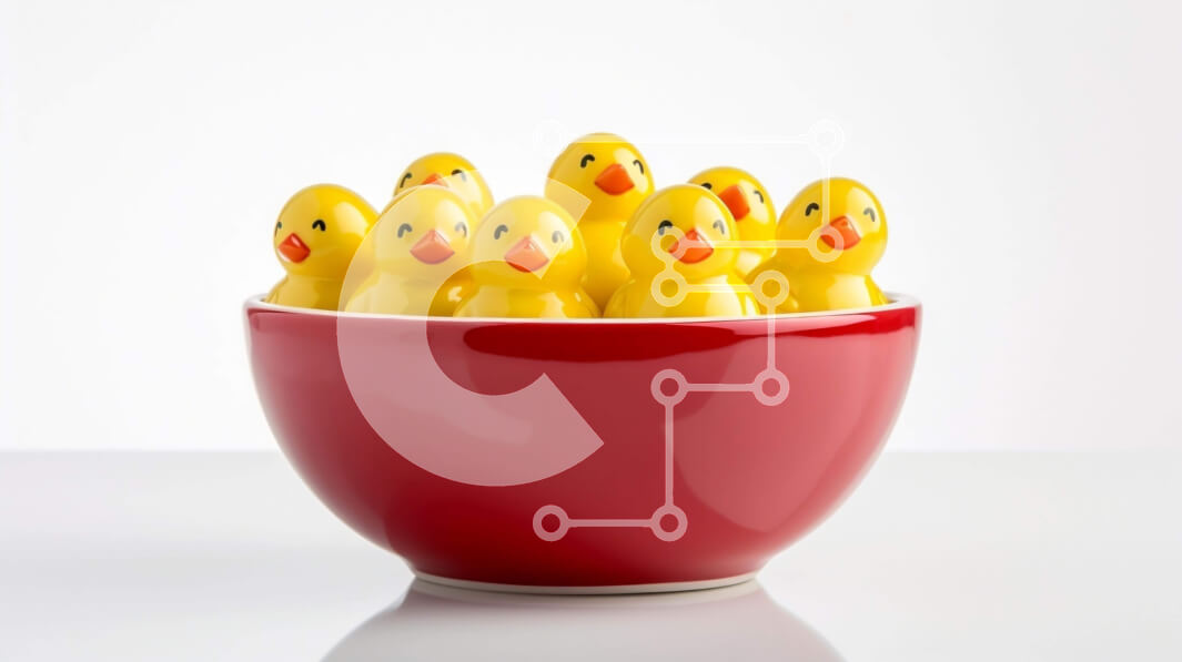Intra Συλλεκτικό Ξύλινο Παζλ Plywood 4mm - Παιχνιδιάρικο κόκκινο μπολ με κίτρινες πάπιες και κομμάτια χαρτιού Σε Ξύλινο Κουτί - Διαστάσεις: 10x10 cm – 25 κομμάτια
