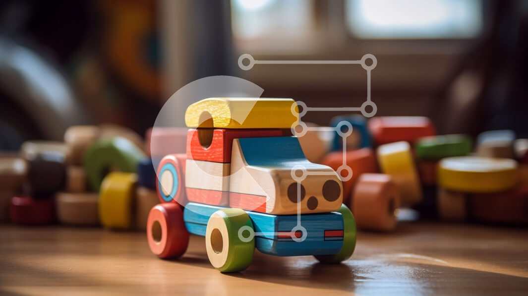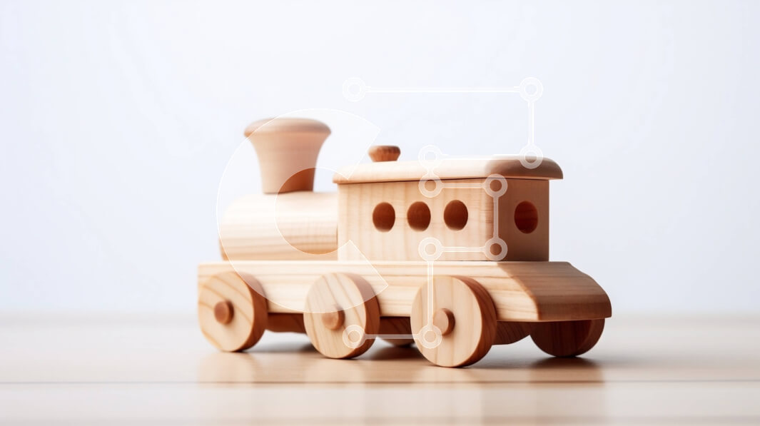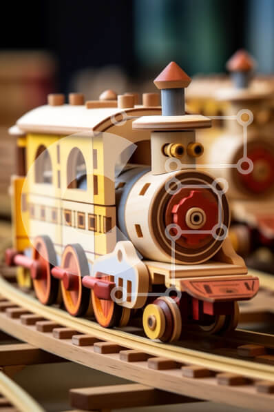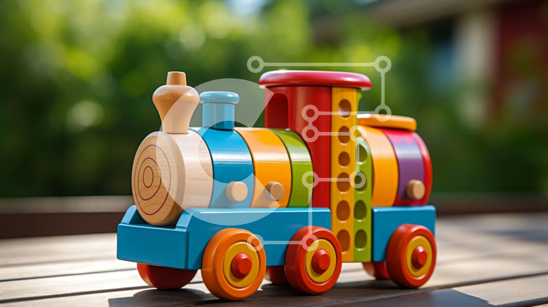 Intra Συλλεκτικό Ξύλινο Παζλ Plywood 4mm - Πολύχρωμο ξύλινο τρένο παιχνιδιών σε παιχνιδιάρικο φόντο Σε Ξύλινο Κουτί - Διαστάσεις: 10x10 cm – 25 κομμάτια