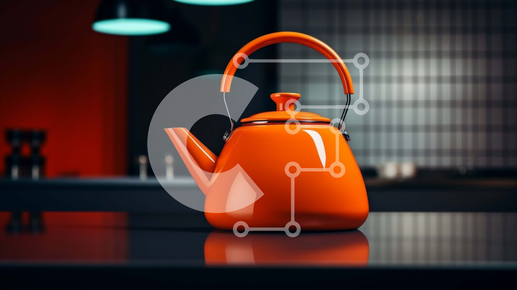 Intra Συλλεκτικό Ξύλινο Παζλ Plywood 4mm - Πορτοκαλί βραστήρας σε μαύρο πάγκο στην κουζίνα Σε Ξύλινο Κουτί - Διαστάσεις: 10x10 cm – 25 κομμάτια