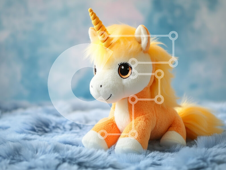 Intra Συλλεκτικό Ξύλινο Παζλ Plywood 4mm - Πορτοκαλί βελούδινο παιχνίδι μονόκερου σε μπλε φόντο Σε Ξύλινο Κουτί - Διαστάσεις: 10x10 cm – 25 κομμάτια