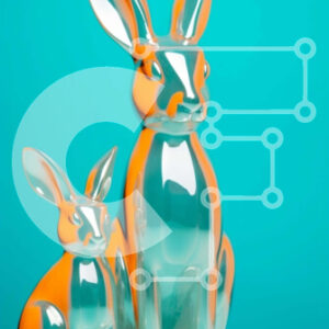 Intra Συλλεκτικό Ξύλινο Παζλ Plywood 4mm - Ασημένια ειδώλια κουνελιών σε τιρκουάζ φόντο Σε Ξύλινο Κουτί - Διαστάσεις: 10x10 cm – 25 κομμάτια