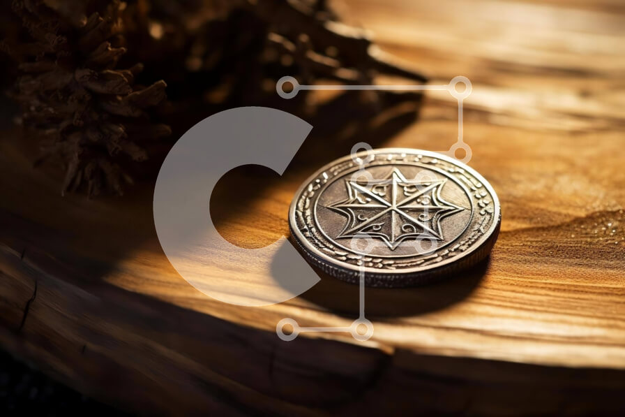 Intra Συλλεκτικό Ξύλινο Παζλ Plywood 4mm - Αρχαίο ασημένιο νόμισμα σε παλιό ξύλινο τραπέζι Σε Ξύλινο Κουτί - Διαστάσεις: 10x10 cm – 25 κομμάτια