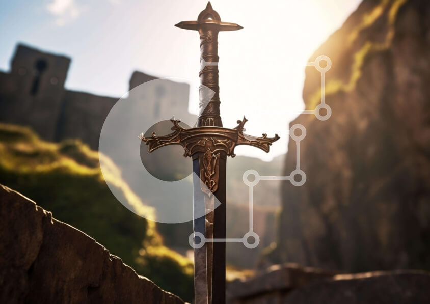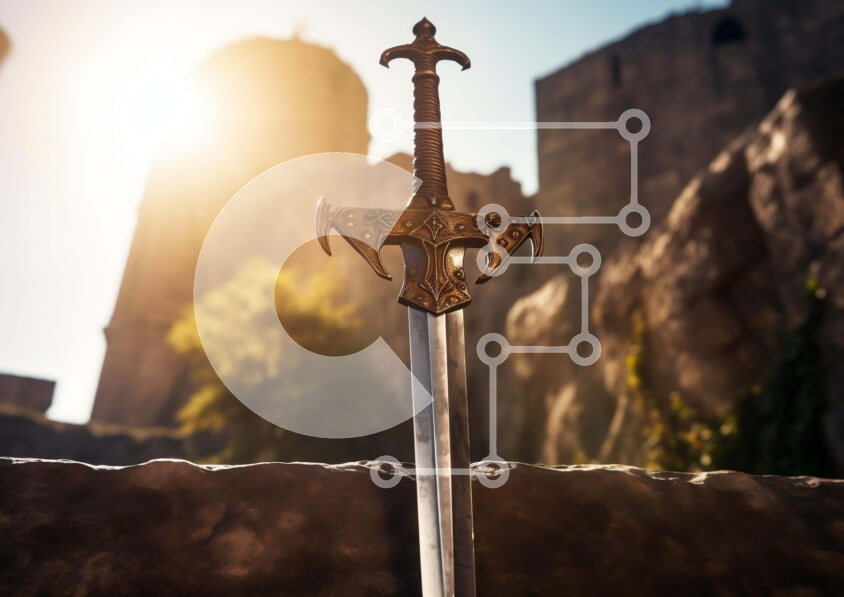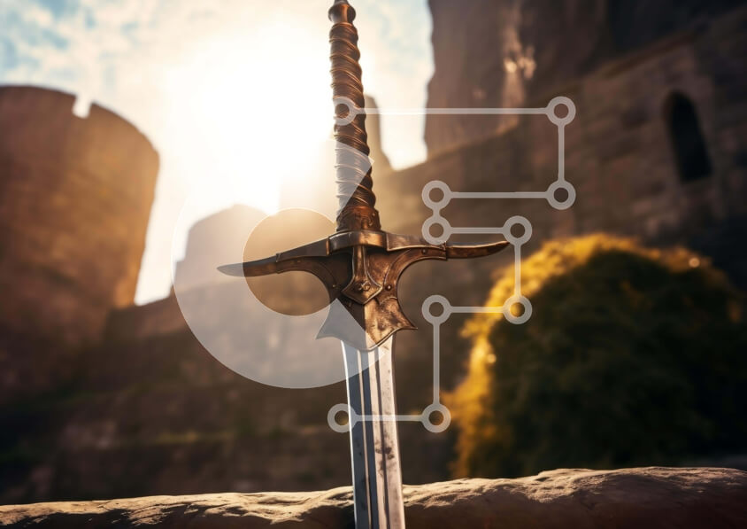 Intra Συλλεκτικό Ξύλινο Παζλ Plywood 4mm - Αρχαίο ξίφος στο παλιό κάστρο Σε Ξύλινο Κουτί - Διαστάσεις: 10x10 cm – 25 κομμάτια