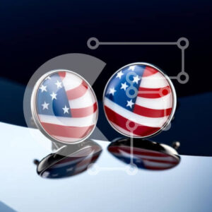 Intra Συλλεκτικό Ξύλινο Παζλ Plywood 4mm - Ασημένια μανικετόκουμπα με σχέδιο αμερικανικής σημαίας Σε Ξύλινο Κουτί - Διαστάσεις: 10x10 cm – 25 κομμάτια