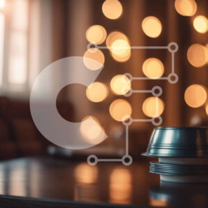 Intra Συλλεκτικό Ξύλινο Παζλ Plywood 4mm - Ασημένιο φλιτζάνι καφέ σε ξύλινο τραπέζι με πολύχρωμα φώτα Σε Ξύλινο Κουτί - Διαστάσεις: 10x10 cm – 25 κομμάτια