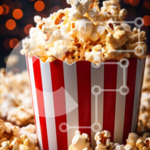 Intra Συλλεκτικό Ξύλινο Παζλ Plywood 4mm - Μπολ ποπ κορν σε ριγέ χάρτινη τσάντα σε ξύλινη επιφάνεια Σε Ξύλινο Κουτί - Διαστάσεις: 10x10 cm – 25 κομμάτια