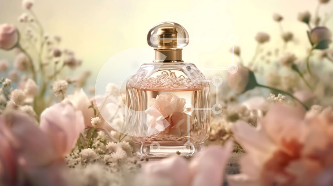 Intra Συλλεκτικό Ξύλινο Παζλ Plywood 4mm - Άρωμα και Φύση: Μπουκάλι αρώματος σε ένα χωράφι με λουλούδια Σε Ξύλινο Κουτί - Διαστάσεις Puzzle: 10x10 cm – 25 κομμάτια
