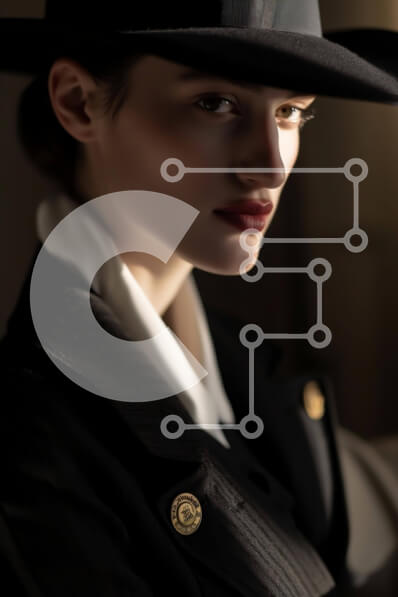 Intra Συλλεκτικό Ξύλινο Παζλ Plywood 4mm - Κομψή γυναίκα με μαύρο κοστούμι και καπέλο που βλέπει μακριά Σε Ξύλινο Κουτί - Διαστάσεις Puzzle: 10x10 cm – 25 κομμάτια