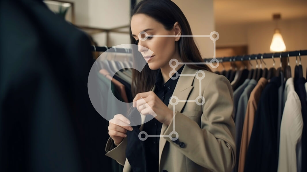 Intra Συλλεκτικό Ξύλινο Παζλ Plywood 4mm - Κομψή γυναίκα που επιλέγει ρούχα από ένα ράφι καταστήματος Σε Ξύλινο Κουτί - Διαστάσεις Puzzle: 10x10 cm – 25 κομμάτια