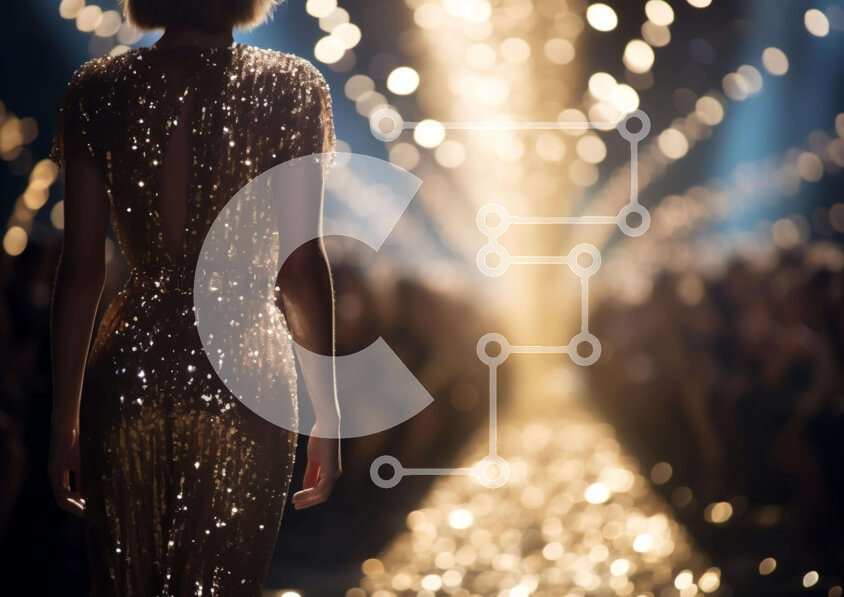 Intra Συλλεκτικό Ξύλινο Παζλ Plywood 4mm - Κομψή γυναίκα με χρυσό φόρεμα στην πασαρέλα μόδας Σε Ξύλινο Κουτί - Διαστάσεις Puzzle: 10x10 cm – 25 κομμάτια