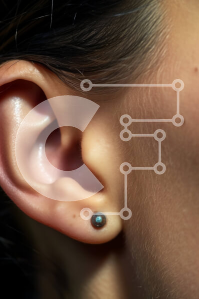 Intra Συλλεκτικό Ξύλινο Παζλ Plywood 4mm - Κοντινό πλάνο του γυναικείου αυτιού με το σκουλαρίκι με διαμάντι Σε Ξύλινο Κουτί - Διαστάσεις Puzzle: 10x10 cm – 25 κομμάτια
