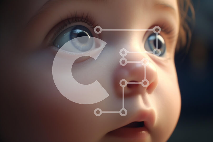 Intra Συλλεκτικό Ξύλινο Παζλ Plywood 4mm - Κοντινό πλάνο του προσώπου ενός μωρού με μπλε μάτια Σε Ξύλινο Κουτί - Διαστάσεις Puzzle: 10x10 cm – 25 κομμάτια