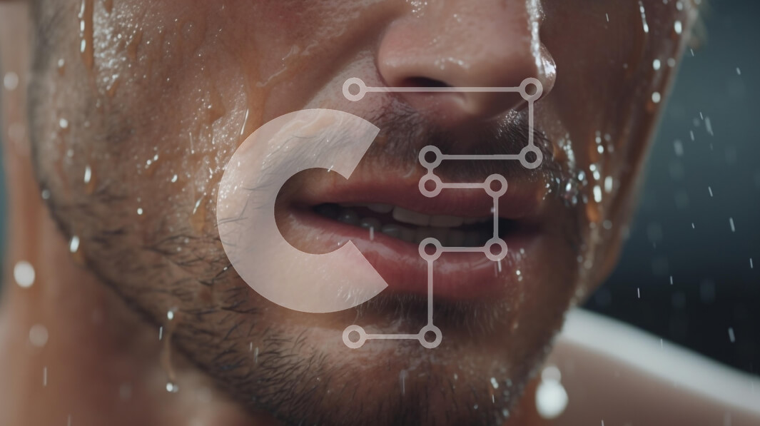 Intra Συλλεκτικό Ξύλινο Παζλ Plywood 4mm - Κοντινό πλάνο του προσώπου ενός άνδρα με σταγονίδια νερού Σε Ξύλινο Κουτί - Διαστάσεις Puzzle: 10x10 cm – 25 κομμάτια