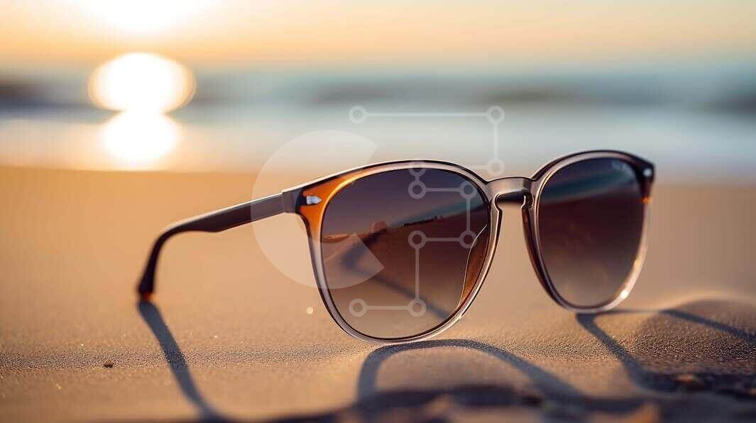 Intra Συλλεκτικό Ξύλινο Παζλ Plywood 4mm - Γυαλιά ηλίου στην παραλία στο ηλιοβασίλεμα Σε Ξύλινο Κουτί - Διαστάσεις Puzzle: 10x10 cm – 25 κομμάτια