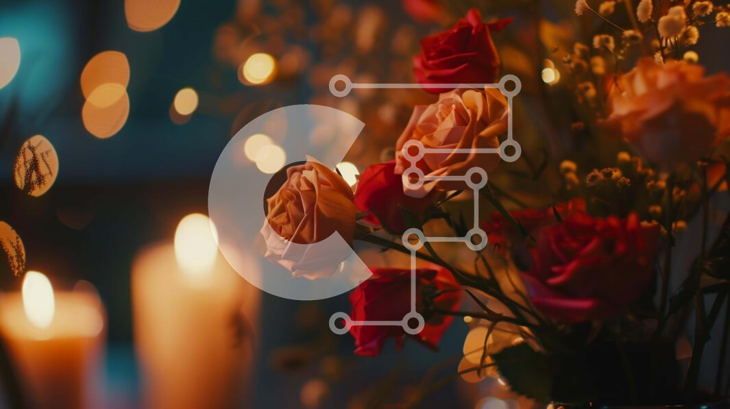 Intra Συλλεκτικό Ξύλινο Παζλ Plywood 4mm - Γυάλινο βάζο με κόκκινα και ροζ τριαντάφυλλα και κηροπήγια Σε Ξύλινο Κουτί - Διαστάσεις Puzzle: 10x10 cm – 25 κομμάτια