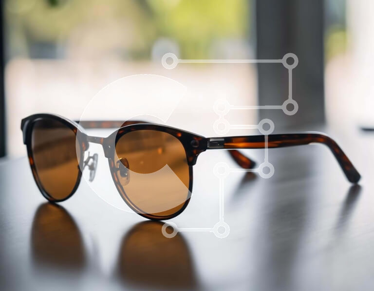 Intra Συλλεκτικό Ξύλινο Παζλ Plywood 4mm - Γυαλιά ηλίου σε σχήμα πεταλούδας σε πορτοκαλί φόντο Σε Ξύλινο Κουτί - Διαστάσεις Puzzle: 10x10 cm – 25 κομμάτια