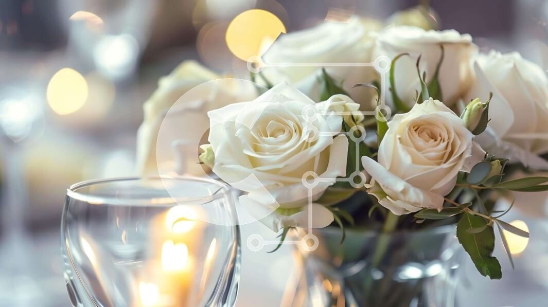 Intra Συλλεκτικό Ξύλινο Παζλ Plywood 4mm - Γυάλινο βάζο με λευκά τριαντάφυλλα, κεριά και ποτήρια κρασιού Σε Ξύλινο Κουτί - Διαστάσεις Puzzle: 10x10 cm – 25 κομμάτια
