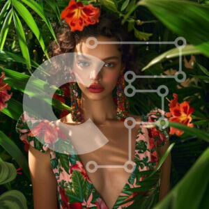 Intra Συλλεκτικό Ξύλινο Παζλ Plywood 4mm - Γυναίκα με εξωτικό φλοράλ φόρεμα με τροπικά φυτά και λουλούδια Σε Ξύλινο Κουτί - Διαστάσεις Puzzle: 10x10 cm – 25 κομμάτια