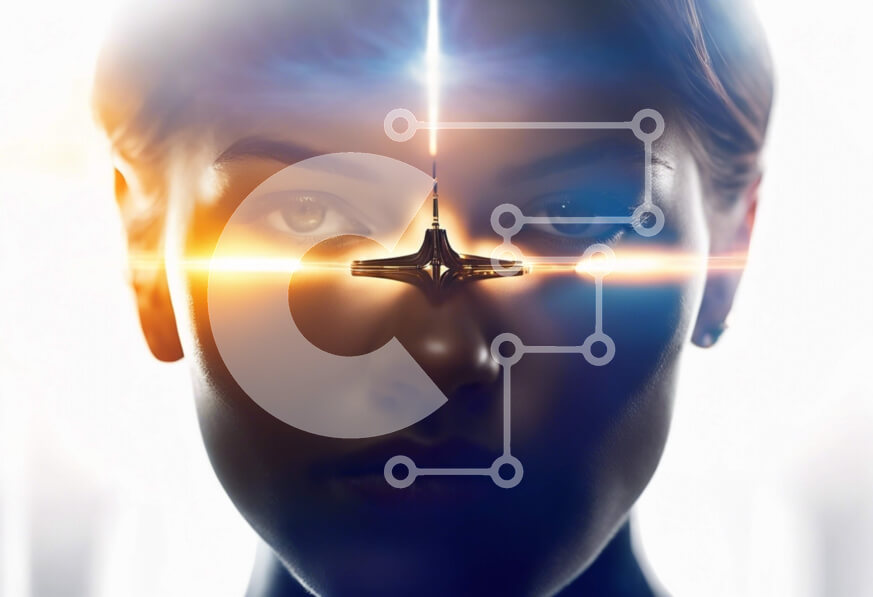 Intra Συλλεκτικό Ξύλινο Παζλ Plywood 4mm - Γυναίκα με έντονα φώτα που περιβάλλουν τα μάτια Σε Ξύλινο Κουτί - Διαστάσεις Puzzle: 10x10 cm – 25 κομμάτια